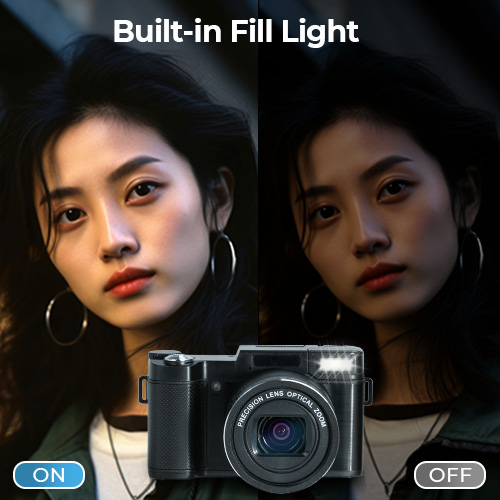 When the sun sets and the stars come out, the 5K digital camera's built-in flashlight will help you capture the magic. Perfect for evening campfire gatherings or early morning hikes, it ensures your photos are bright and clear, even in low-light conditions.