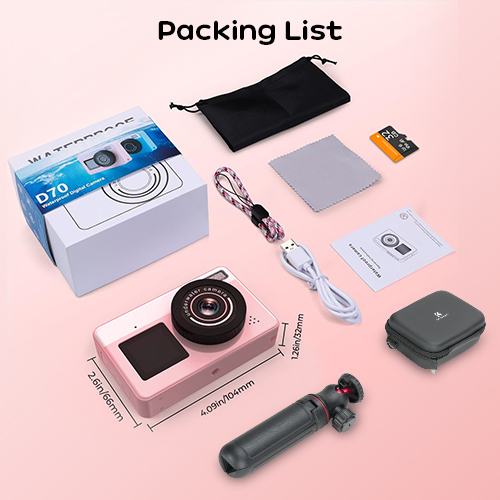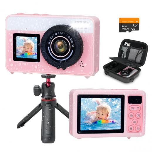 - Don't underestimate the cute kid's camera—it's a real performer. Capable of 4K/30fps video and 48MP photos, it's fully waterproof up to 3M/10FT without a case. Dual screens allow for effortless selfies, while autofocus and 18X zoom features bring the underwater world into crisp focus. Lightweight, floatable, and ready for action—this camera is ideal for vacations, poolside play, beach days, or everyday discoveries.