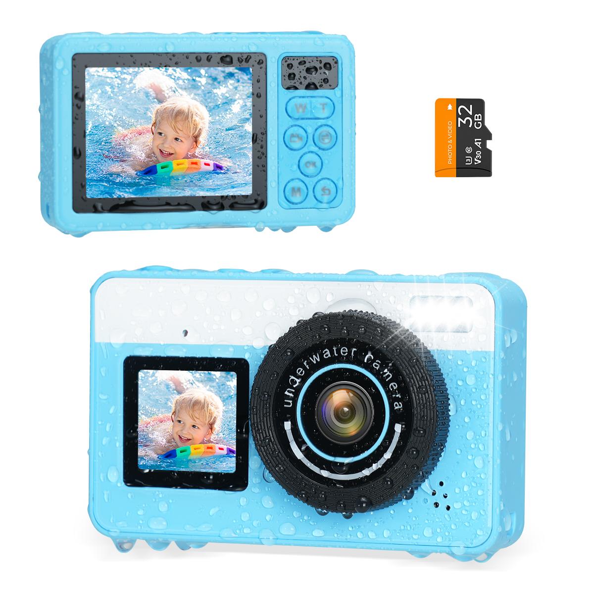 - Don't underestimate the cute kid's camera—it's a real performer. Capable of 4K/30fps video and 48MP photos, it's fully waterproof up to 3M/10FT without a case. Dual screens allow for effortless selfies, while autofocus and 18X zoom features bring the underwater world into crisp focus. Lightweight, floatable, and ready for action—this camera is ideal for vacations, poolside play, beach days, or everyday discoveries.