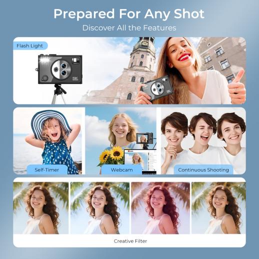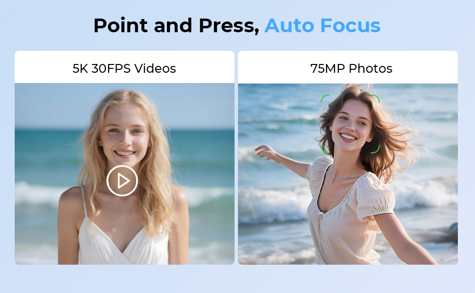 - * 5K/30FPS Video & 75MP AutoFocus, Shoot Like a Pro : The digital cameras for photography with a Sony CMOS sensor delivers stunning 5K/30FPS UHD video and 75MP photos. With fast autofocus and a built-in fill light, every shot remains sharp and clear. Whether you're capturing breathtaking landscapes or unforgettable moments, the cameras for photography deliver exceptional image quality.