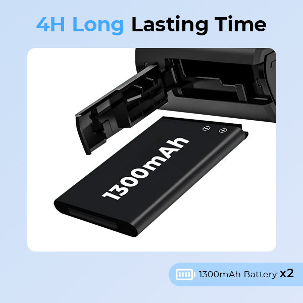 - · 2 x 1300mAh Rechargeable Battery for 4 Hours of Use