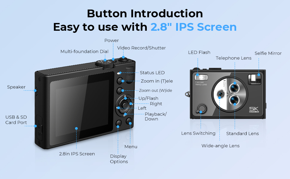 - Navigate with ease on the 2.8" IPS screen—every button of the compact camera for travel is designed for instant mastery.