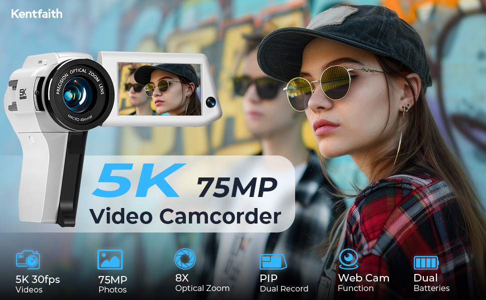 - Welcome to the next generation of personal filmmaking. Kentfaith video camcorder puts spectacular 5K Ultra HD power into a refreshingly lightweight and easy-to-use design. The upgraded single-hand grip fits perfectly in your palm, giving you instant, stable control without fatigue. Whether you're vlogging on the go or capturing family milestones, achieving stable, crystal-clear video has never been easier.