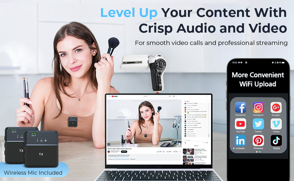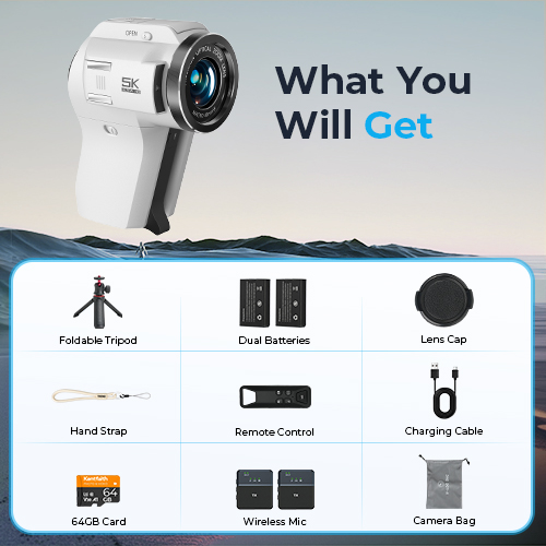 Elevate your online presence instantly. Kentfaith 5K video camcorder transforms into a high-definition webcam for live streaming on YouTube, TikTok, Skype, and more. To ensure your audio is as crisp as your video, we include a compact wireless microphone that captures your voice clearly without tying you down.