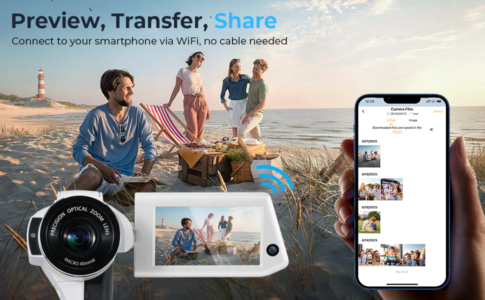 - Connect Kentfaith 5K vlog camera to your phone or tablet via WiFi. You can preview your shots live, adjust settings on the fly, capture hands-free, and most importantly, transfer your masterpieces directly to your device. Upload to Instagram or YouTube instantly and let your followers be part of the moment, right as it happens.