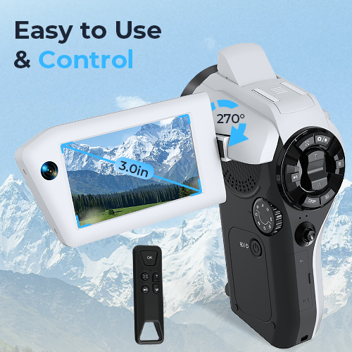 Designed for long-time recording, the innovative handle provides a comfortable and secure grip, making it a joy to use. The screen is 270° rotatable, so you can shoot at any angle. Comes with a remote control for hands-free shooting from a distance.