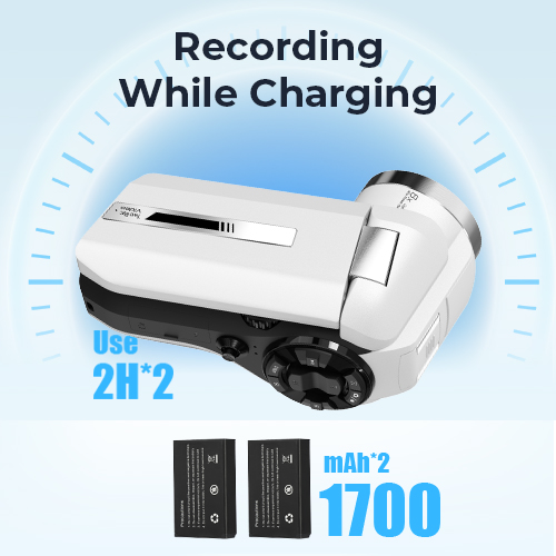- * Handheld Grip & 2 Batteries, All-day Comfort & Power: Say goodbye to tired arms and shaky footage. Our ergonomic handle design makes single-handed shooting natural and comfortable, even during long sessions. Buttons are placed exactly where your fingers rest for simple operation and quick mode switching. Two 1700mAh batteries (4 hours total runtime) keep you powered, plus you can record while charging.
