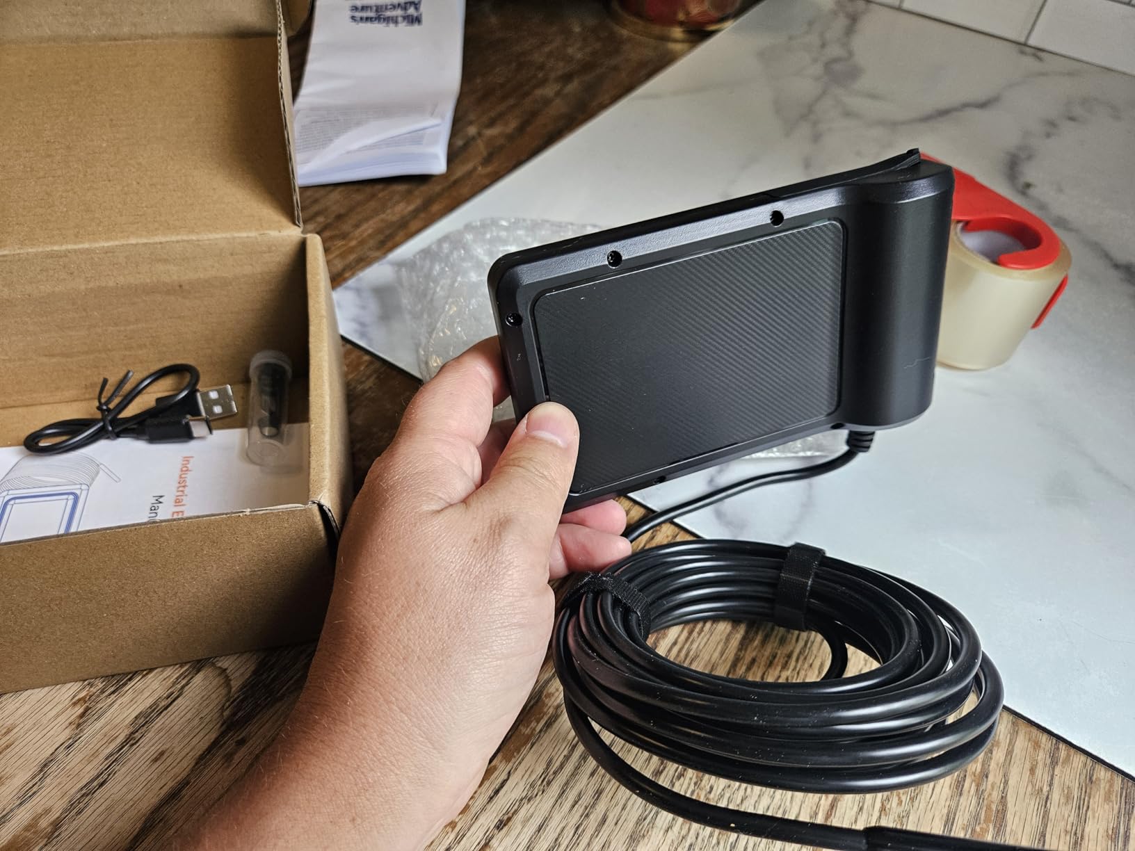 I recently picked up the Dual Lens Endoscope Camera with Light, and I have to say—it’s been a fantastic addition to my toolbox. Whether you're a DIYer or just want to save time (and money) on home or car repairs, this little gadget is extremely useful.I’ve already used it for plumbing work around the house and for inspecting tight spots in my car engine, and in both cases, it made the job much easier. The dual lens design gives you a clear forward and side view, which saved me a lot of guesswork. The 4.5" LCD screen is sharp, and the 1920P HD resolution provides really clear images—much better than I expected.The 8 adjustable LEDs do a great job of lighting up dark spaces, and the semi-rigid 16.4ft cable is long and flexible enough to reach tricky areas without being too floppy. The fact that it’s IP67 waterproof makes it perfect for checking out drains and pipes. Plus, the included 32GB memory card is a nice bonus for saving photos or video if you need to review them later.