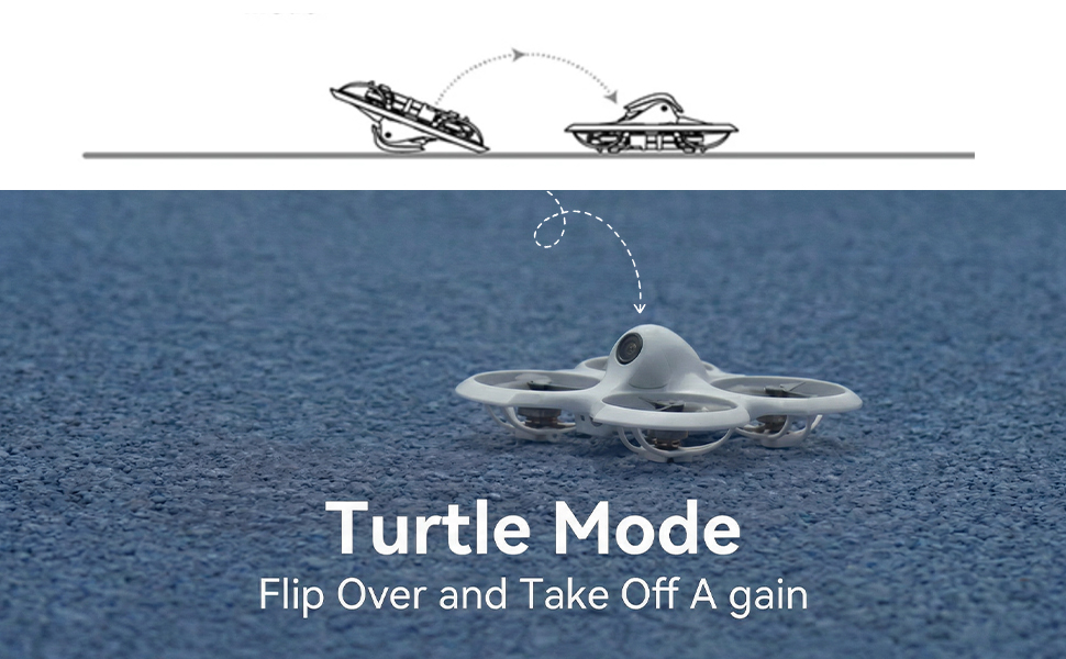 - * Turtle Mode:Cetus Pro brushless quadcopter comes with turtle mode, which is the world's leading technology. When the Cetus Pro brushless beginner fpv drone falls to the ground upside-down, simply activate turtle mode with your transmitter to turn it over. No walking through the fields for this.