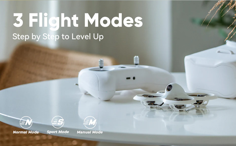 - N/ S/ M three modes of the fpv drone kit are available, which can satisfy the different needs of pilots and adapt to various flight environments. Whether you're a seasoned FPV pilot or a complete beginner, the Cetus Pro FPV Kit helps anyone fly confidently from day one. These 3 flight modes can be switched by one SB switch on transmitter, which is simple and convenient. Meanwhile, all modes support 3 different speeds with SLOW/MID/FAST, pilots can switch it by one SC switch on the transmitter.