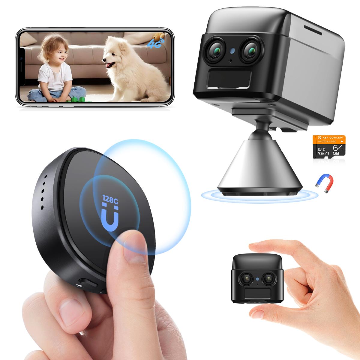 4G Cellular Security Camera & Mini Voice Recorder Magnetic Kit, 2K Dual Lens 6X Optical Zoom Camera with 360 PIR Motion Detection, 128G 1600H Voice-Activated Recorder with Noise Cancelling, Kentfaith