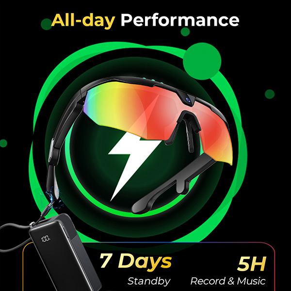 Featured with a 260mAh battery and a power-efficient chip, our POV sunglasses with camera allows you to continuously record 5 hours or enjoy your playlist for 10 hours. Convenient recharge via Type-C cable.