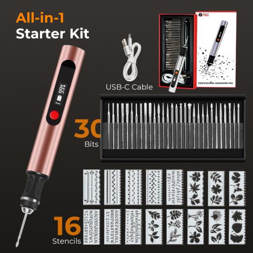 No steep learning curve. No fuss. Just pick it up and go. This cordless engraving pen feels just right in your hand—lightweight, comfy, and intuitive from the first press. And with 30 bits and 16 stencils included, you're set up for endless projects right out of the box. From personalizing gifts to tackling DIY décor, your creative empire starts here.