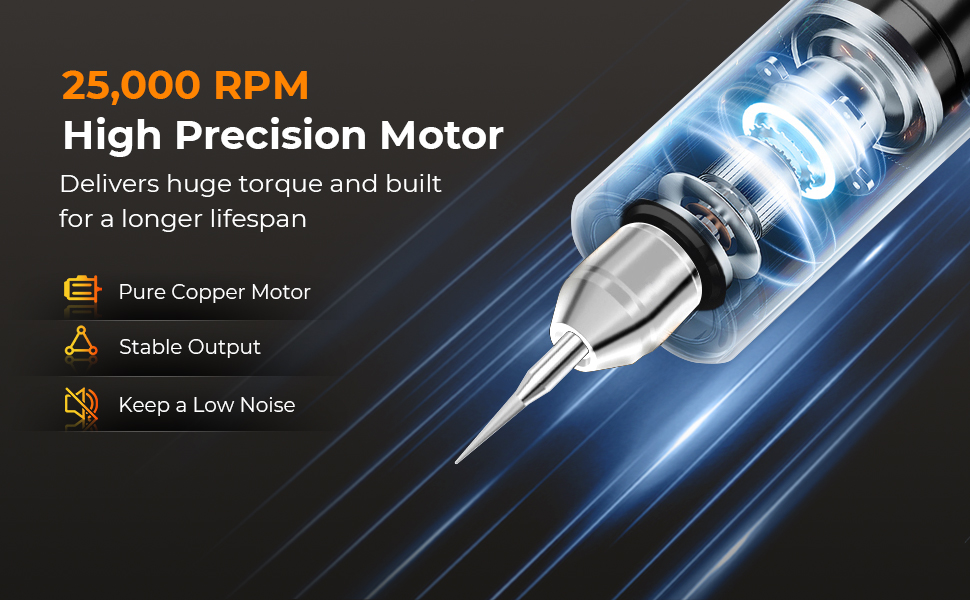 - * 3 Speeds, Put Precision & Control in Your Hands: Choose from 8,000, 16,000, or 25,000 RPM for just the right power. Whether you're etching fine details or polishing large surfaces, the 2.35mm precision chuck holds steady with zero slippage, so your lines stay crisp and your hand stays steady. With our engraving pen, intricate, detailed creations come naturally.