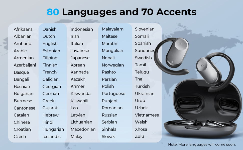 - * Accurate & Fast Translation Between 150 Languages Powered by the most powerful AI translation engine, Kentfaith live translator headphones offer 98% accuracy and 0.5s low latency. The translation headphones support 150 languages(80 languages + 70 accents), covering most countries in the world.