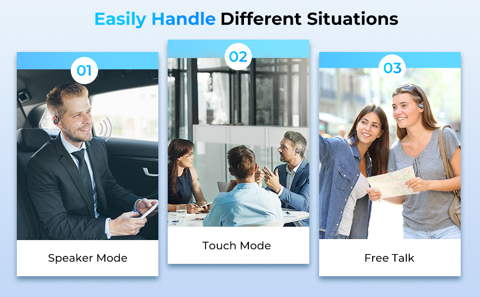 - Touch Mode: Each person wears an earbud. The person who touches their earbud hears a "beep" and begins speaking. Both parties can hear the translation in their earbud. Ideal for low-frequency, turn-based conversations—perfect for meetings or shared discussions.