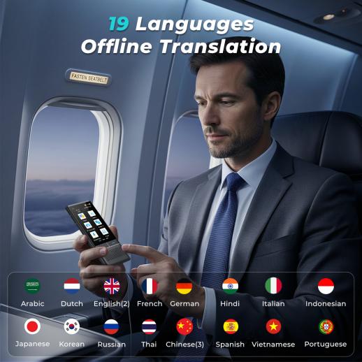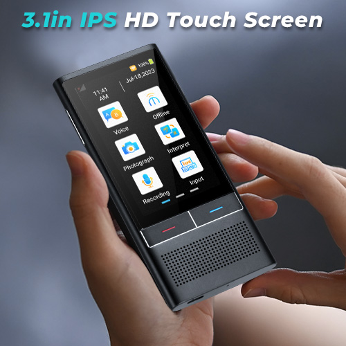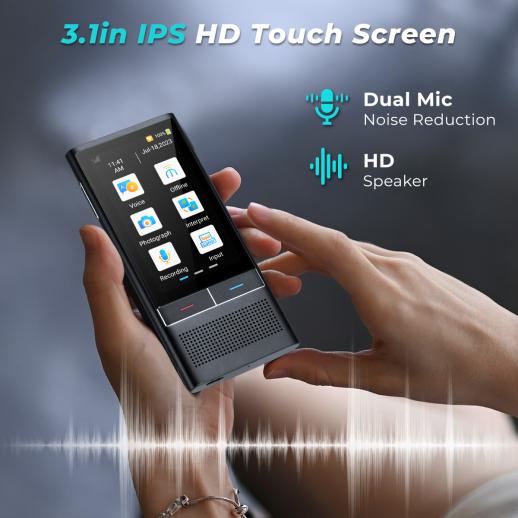 It is equipped with dual mic noise reduction technology, which can effectively filter ambient noise and pick up clear sound even in noisy public places such as airports and streets, ensuring accurate translation. It also has a 3.1-inch IPS HD touch screen and HD speaker, making the operation simple and intuitive, and the translation results are clearly displayed and played.
