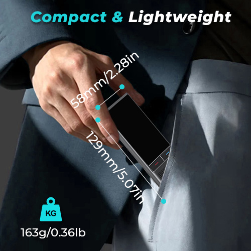 - At just 5.07x2.28x0.49in (129x58x12.6mm) and weighing only 163g/0.36lb, our offline translator device easily fits in your pocket or bag, you can take it anywhere without adding extra weight or bulk to your travel.