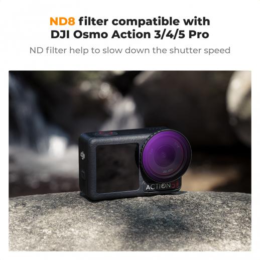 - * 3 Stop Light Reduction: The ND8 filter for DJI Osmo Action 5 Pro/Osmo Action 4/Osmo Action 3, provide light reduction for partly cloudy day.No color shift.