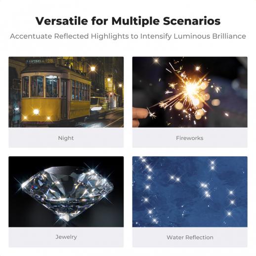 - * 【Ideal for Nightscapes & Detailed Scenes】Unleash your creativity on a variety of scenes. It excels in capturing dazzling city night lights, sparkling reflections on sunlit water, and the exquisite details of jewelry, transforming ordinary point lights into extraordinary highlights.