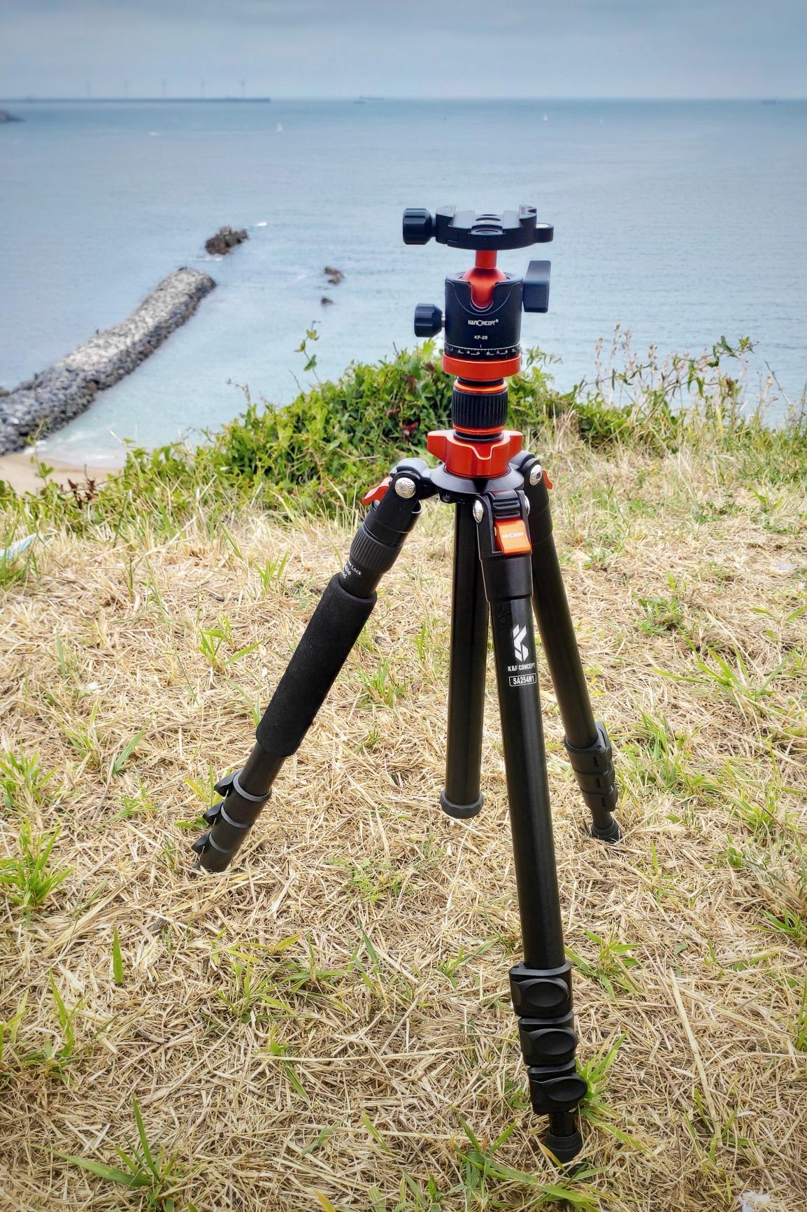tri-pod in it's simplest form is a three-legged stand for supporting a camera or other apparatus. I've used several tripods throughout the years, and each one excels at one thing or another. Some are light, some are super sturdy, and some are miniature making them easy to pack away or carry on a day trip. For my general photography use (product photography, long exposures) I've found that finding the right set of compromises leads to the best tripod for my needs. That's where I've found the K&F to excel at meeting my specific set of needs. Here's what I like: The tripod is light. It's not feather weight, or forget it's there light, but it's light enough to be able to carry around all day strapped to a comfortable camera bag. Weighing in at just 3.3 lbs, it's about as light of a travel tripod built of aluminum I could expect. Completely folded, this tripod is about 17 inches long. Plenty of "collapsability" to be able to pack it on the side of your bag without it sticking up in the air. This tripod feels really well built for being a sub £100 travel tripod. When you hold it, it feels and looks substantial. Not heavy, just very tight tolerances, and generally aesthetically pleasing. The anodizing on the aluminum lock-outs and ball head are a really nice touch. It is rated to hold 22lbs/10kg. I'm certain it will hold that easily, if not more. The rubber grips are all implemented nicely with zero movement between the rubber grip and the lock out it turns. So, the absolute most important factor for me in a tripod, is obviously the stability. While this tripod will extend to almost 69 inches/175 cm, it's most stable when the center support is at the mid to low setting, and only the top three leg extensions are out. It's absolutely rock solid at it's med high, to mid level settings. When everything is extended to full height, a strong wind would absolutely introduce some movement. Leg lock outs are as expected. They lock out firmly and confidently when unfolding. When extending the legs, the rubber twist locks are easily tightened and I have zero doubt about their ability to stay put. The 28mm ball head is surrounded by what looks like a teflon sleeve offering smooth camera movements. The head also pans buttery smooth like a geared or fluid head would. The Arca-Swiss mount is a great option and seems to be the new standard in quick mounts. The Arca base also has a spirit level which is handy if your camera doesn't have in-camera level indication. One leg is designed to be used as a monopod. I don't use that feature, but it's nice to have and easy to transition. Under center post is a bag or weight hook. This can be removed revealing a 3/8 female mount. Great for mounting a second ball head for quick camera position swaps. My only gripe would be that the feet are not replaceable. They are shallow spiked rubber feet that are not interchangeable. They work fine for light duty use. All in all, I am very happy with this tripod purchase. At £90, I'm not sure you could get a better photo tri-pod for general use photography. It's lightweight, stable, and looks great. Just buy this tripod already, you won't be disappointed.