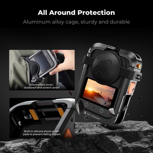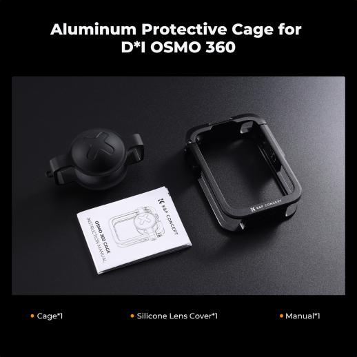 - * [Dedicated for Osmo 360]: This metal protective cage from K&F Concept is specially designed for DJI Osmo 360, which is made of aluminum alloy, comes with a silicone lens cover, sturdy and durable, provides your camera with all-around protection against drops and impacts, and does not affect 360 content creation
