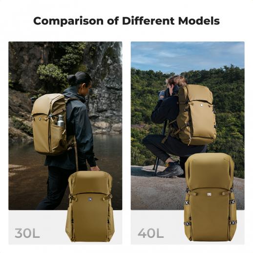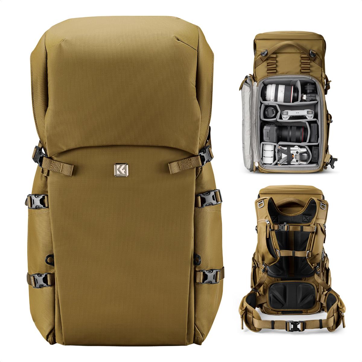 K&F Concept 40L Professional Adventure Camera Backpack | Ergonomic Trekking Bag for DSLR/Mirrorless, Tripod Holder & Weatherproof, Champagne Color