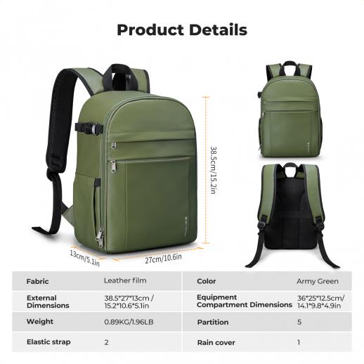K&F Concept 13L Camera Backpack Nature Wander 12 Black, Lightweight Photography Bag with Quick Access Front Opening, Tripod Strap & Dual-Purpose Design for Travel and Daily Use, Green-PU