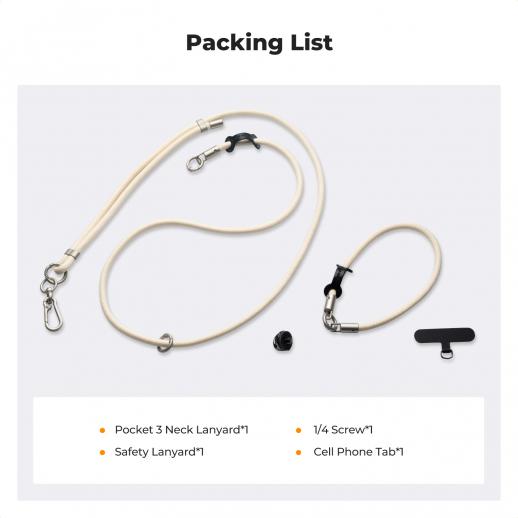 - * 【EASY TO CARRY】 The neck lanyard is equipped with both a 1/4 screw interface and a cell phone lanyard intertace, Or just snap on the original protective cover,easy to install, safe and quick. Easy to carry, can be slung/neck/handheld, perfect for videography, traveling and daily vlogging use. 【PACKAGE LIST】Includes Neck Lanyard for Pocket 3*1 ,Safety Lanyard*1, 1/4 Screw*1,Cell Phone Tab*1.