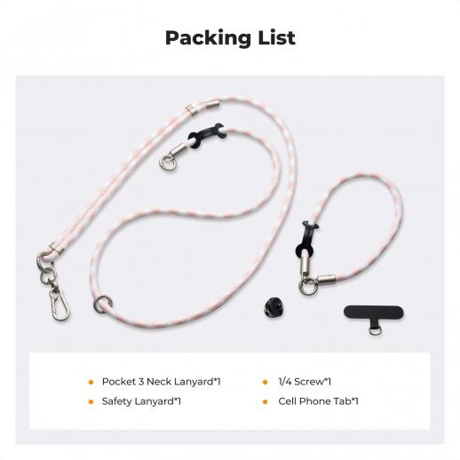 - * 【EASY TO CARRY】 The neck lanyard is equipped with both a 1/4 screw interface and a cell phone lanyard intertace, Or just snap on the original protective cover,easy to install, safe and quick. Easy to carry, can be slung/neck/handheld, perfect for videography, traveling and daily vlogging use. 【PACKAGE LIST】Includes Neck Lanyard for Pocket 3*1 ,Safety Lanyard*1, 1/4 Screw*1,Cell Phone Tab*1.