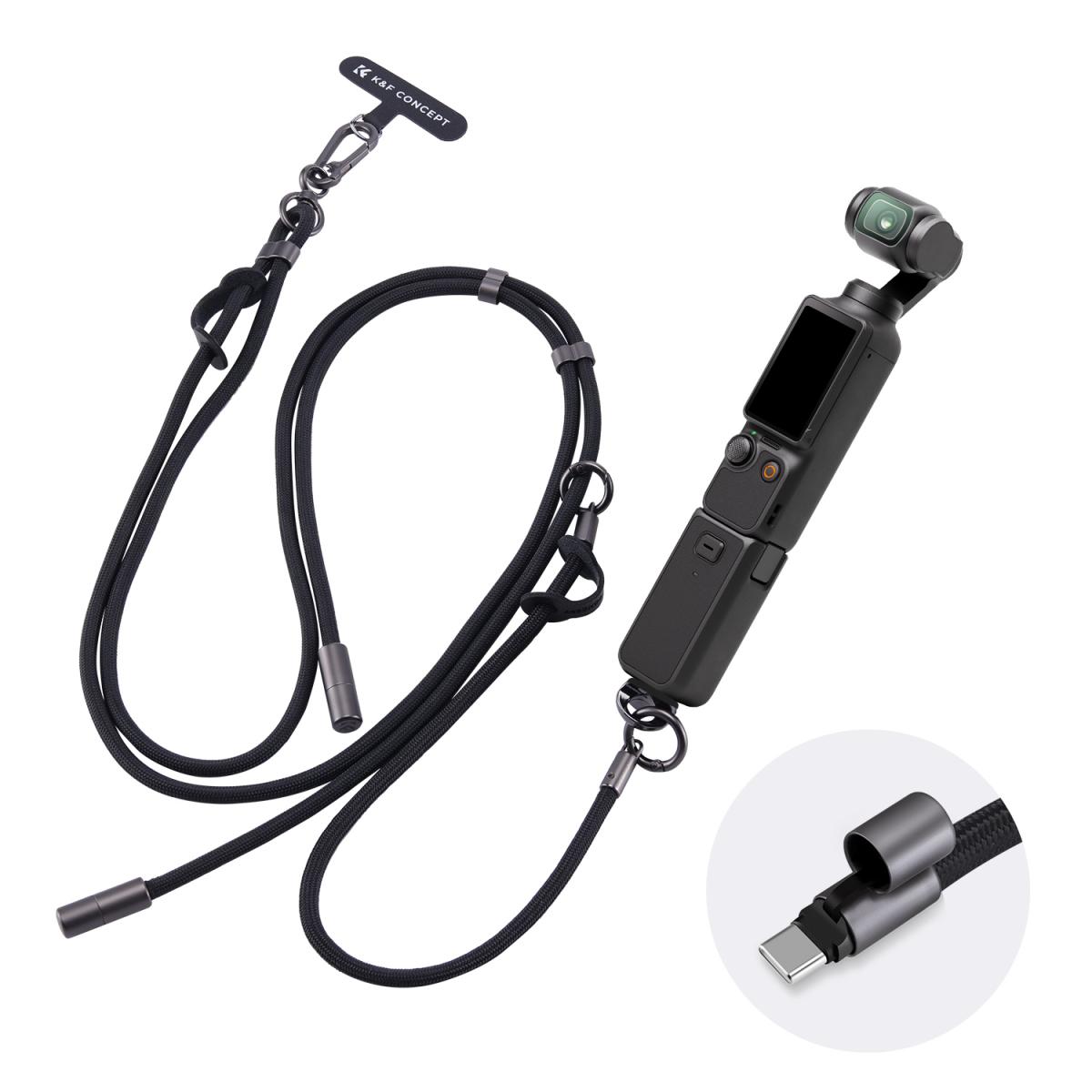 Necklace Strap for Osmo Pocket 3, Multi-functional Hanging Rope for Smartphones, Triple Protection, Adjustable Length, Tool-Free Installation, Compatible with Smartphones and Action Cameras, Frees Up Your Hands and Gets Shooting Quickly, Black