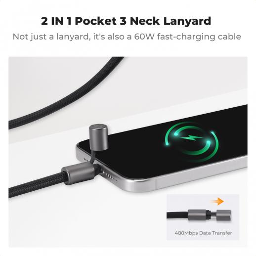 - * [Designed for Pocket 3 & Built-in Fast Charging Cable] Includes a dedicated hook for direct attachment to the device's protective case. Built-in Type-C cable supports 60W fast charging and 480Mbps data transfer. The alloy-covered terminals provide waterproof and dustproof protection, and the high-strength nylon braided material provides excellent durability. No need for a spare cable, so you can rest assured when you're on the go.