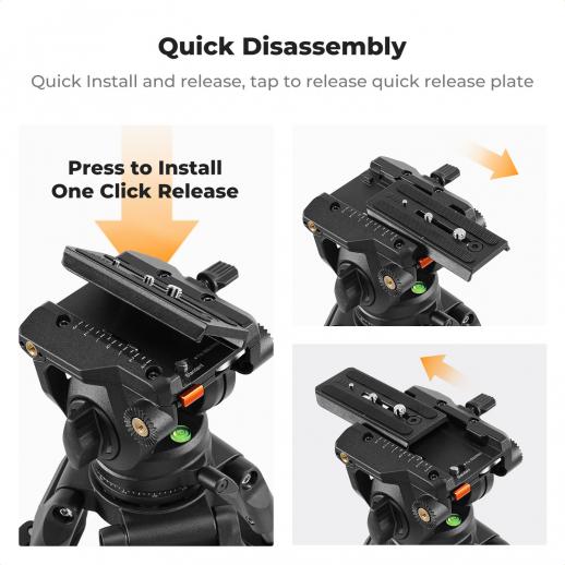 - * 【Product Details】Fluid head features a built-in hex wrench, adjustable ambidextrous handle, and anti-rotation pins - delivering professional control with effortless operation for any shooting scenario.