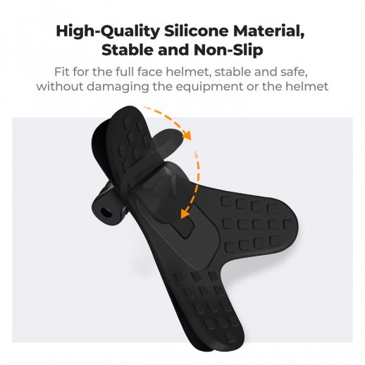 - * Shock-proof and anti-slip design: Premium ABS material Y-shaped base, styling to fit the helmet chin and avoid scratching the helmet, locked with dual buckle to ensure that it does not loosen and fall off during use, ensuring stable and clear shooting
