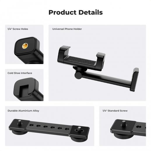- * Rich expansion:There are 6 additional 1/4 ports at the bottom of the base plate, a total of 8 1/4 ports. The phone clip has a cold shoe and a 1/4 port. You can easily install tripods, selfie sticks, fill lights, microphones and other equipment to enhance the shooting effect.