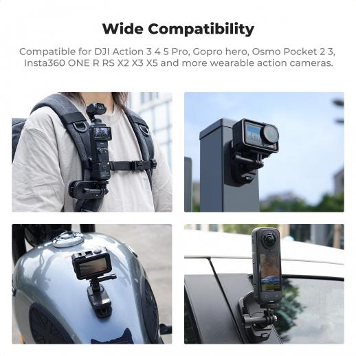- * [Widely Compatible]: Compatible with any action camera with two claw/action camera interface, such as suitable for GoPro Hero 13, 12, 11, 10, 9, 8, 7, (2018), 6 5 4 3, Hero Black, DJI Osmo Action 3/4/5 Pro, Insta360 Ace/Ace Pro/Ace Pro 2 and more, and it's also compatible with any camera with 1/4" screw interface, such as for DJI osmo pocket 3, insta360 X5/X4/X3/X2/GO 3 GO 3 and other.