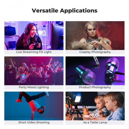 - * 【Full Color RGB & 13 Creative FX】: The S12R offers 0-360° full color, adjustable saturation, 2700K-7500K CCT, and 1-100% dimmable brightness for precise control. Features 13 built-in lighting effects (including Police Car, Fire, SOS, and TV) with 3-level adjustable frequency and brightness, allowing you to easily create the perfect atmosphere for any scenario.