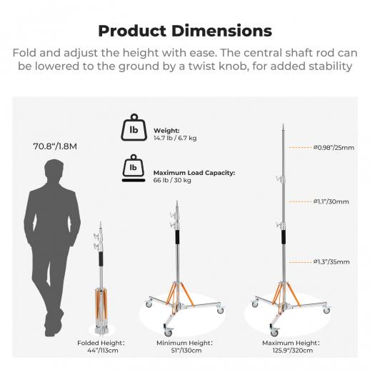 - * 【Rugged & Heavy Duty】: Made of 100% high-grade stainless steel for superior strength. With a maximum load of 30kg, it is specifically designed for professional cameras and video lighting. Its robust build ensures long-lasting stability and reliable performance for demanding studio environments.