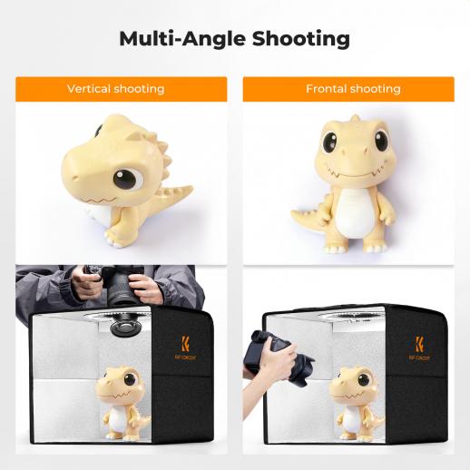 - * 【Multi-Angle Shooting Capability】: Featuring a top-down window and a front opening, this studio supports both eye-level and 90° overhead shooting. Easily capture intricate top details (like phone screens or food flat-lays) without moving your products, allowing for diverse compositions and comprehensive product showcasing.