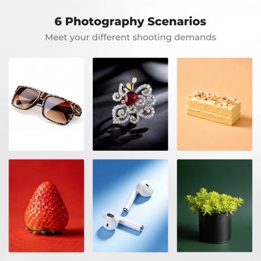 - * 【All-in-One Professional Studio】: Ready to use right out of the box with no complex lighting setup required. It offers a cost-effective and space-saving solution for entrepreneurs and small studios. Perfect for capturing high-end details of jewelry (rings, earrings, pendants) and small items like cosmetics, perfumes, or miniature collectibles with professional results.