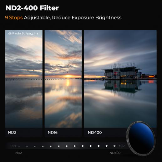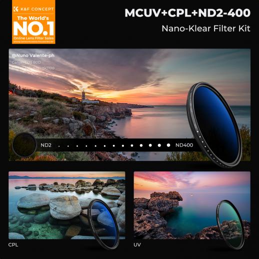 - * 【Versatile & Professional Performance】The UV filter offers powerful lens protection and blocks UV haze. The CPL filter eliminates 98% of non-metallic reflections and enhances color vibrancy. The ND2-400 filter provides 1-9 stops of light reduction for stunning long-exposure shots.
