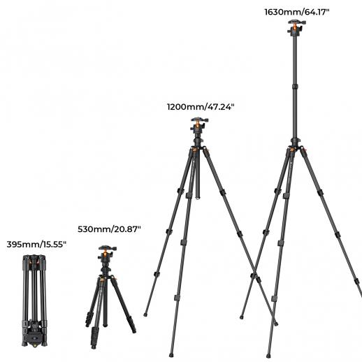 - * 【Lightweight and Portable】(Note: This product is on sale at cost price and no discounts can be used)!4 section leg can adjust tripod height from 20.4''/52cm to 64.1''/163cm; it can be folded to 15.3''/39cm to make it easy to put it in the carrying bag; the net weight with the ball head included is only 2.73 lbs/1.24kg.