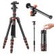 Tripod Kit 60" Carbon Fiber Camera Tripod,Super Lightweight Compact Travel Tripod with 360° Ball Head A225C0+BH-25L and Rotatable Multi-Angle Center Column Set