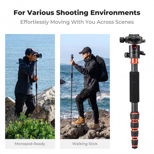 - * 【High-End Carbon Material】The carbon fiber material of aerospace manufacturing is adopted, making the tripod legs harder, stronger, and more stable; At the same time, corrosion resistance and wear resistance have also been improved. What's more, the weight of this tripod is only 1KG/2.2 lbs, which greatly breaks the weight limit of the traditional tripod. It can easily follow the photographer to more special environments, such as mountains, deserts, wilderness and so on, and discover beautiful scenery that has never been seen before.