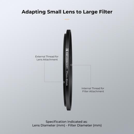 Converts the thread size of your lens to the thread size of any other accessory (such as filters, hoods, flashes and lens converters)
