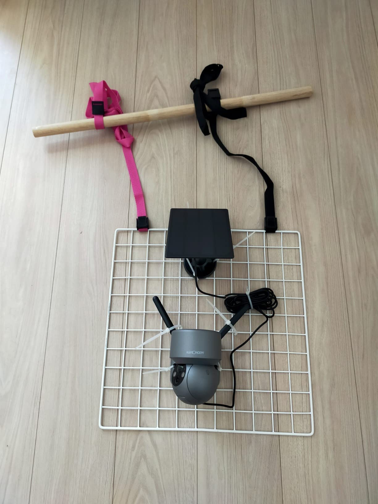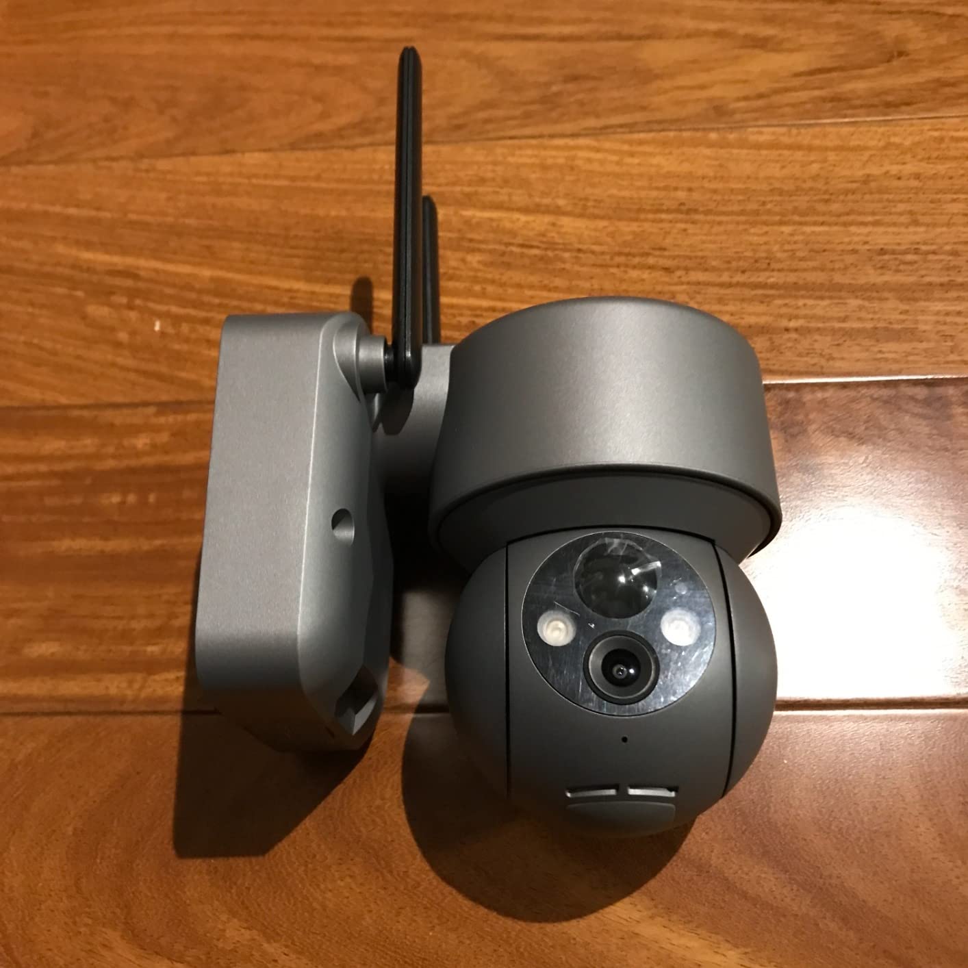 For testing I mounted this piece of wood to move it around for different scenarios. It works well and is reliable. Motion detection is immediate and no false alarms are triggered. The IT is in sleep mode most of the time, so the batteries stayed charged even though the solar panel was not exposed to direct sunlight. As with all cameras, audio and panning may be delayed.