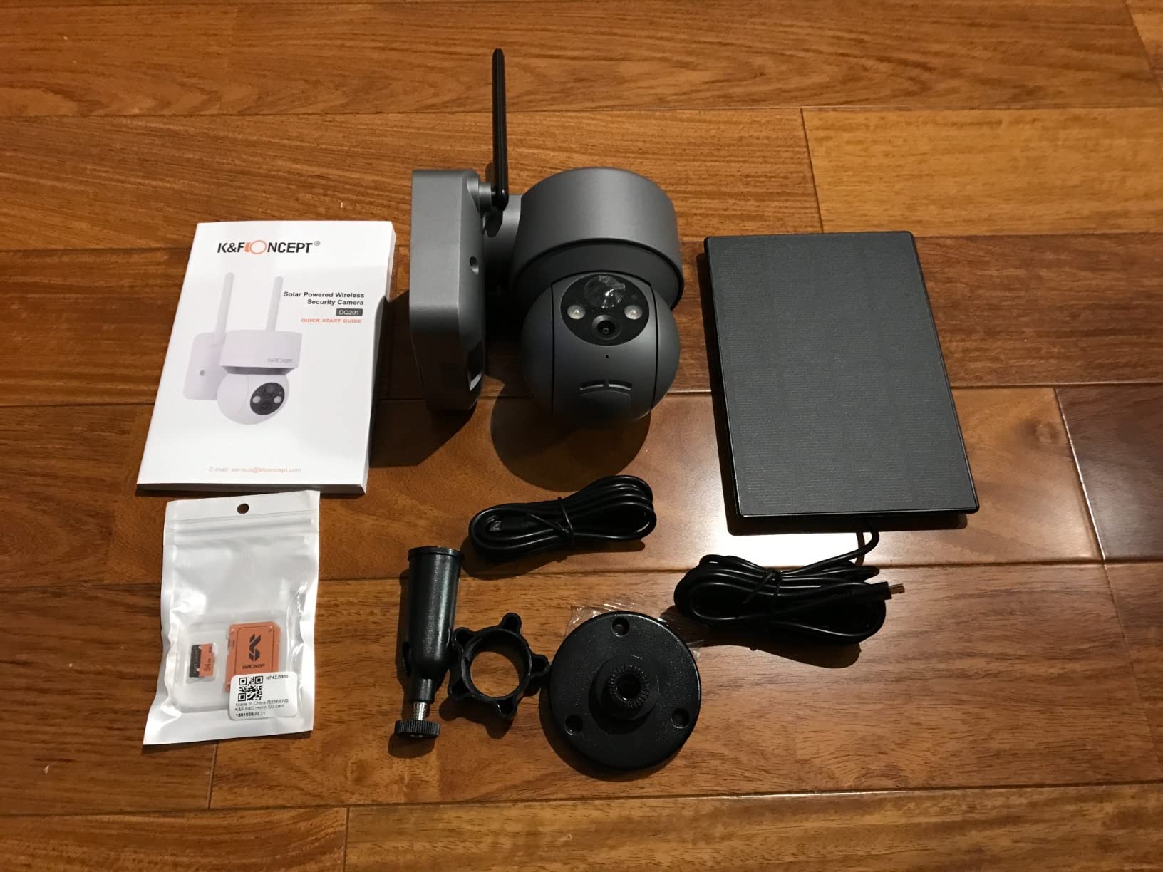 After unboxing all the items, I was pleasantly surprised by the quality of this camera, very well packaged it was too. The quick start guide was easy to navigate and the whole process took 5 minutes, I first noticed when trying to pair the camera up with my Wifi, was it only operates with 2.4Ghz and mine was a 5G network but also I could easily drop down to the 2.4Ghz on my system. This does not come with a micro SD card and the maximum it accepts is 128G. The card can only be inserted one way and I can see people having difficulty with it as there is no picture in the quick start guide to show you. The app you download basically is your controller, I love the PTZ mode, it gives you the ability to move the camera around on your phone app, and also the motion detection feature can be set for the days you are not home which works perfectly for my situation. The picture quality blew me away and the movement on live mode was super smooth. The solar panel has a decent length of cable attached which allowed me to position it facing south with me living in the northern hemisphere, and the camera is recommended not to face direct sunlight which suited my positioning perfectly. I would strongly advise you to position your camera without fixing in place, you can then go indoors and see the strength of the wifi, mine was indicated at 80% which was very good. Overall this camera ticks all the boxes for me, it has so many features which will have their uses at a later date, for the price this security camera is very competitive with other brands and I wouldn't hesitate to recommend it. Finally I would like to have a time lapse feature incorporated into one of these, it would record some awesome sunrise/sunset footage, just an idea K&F Concept.