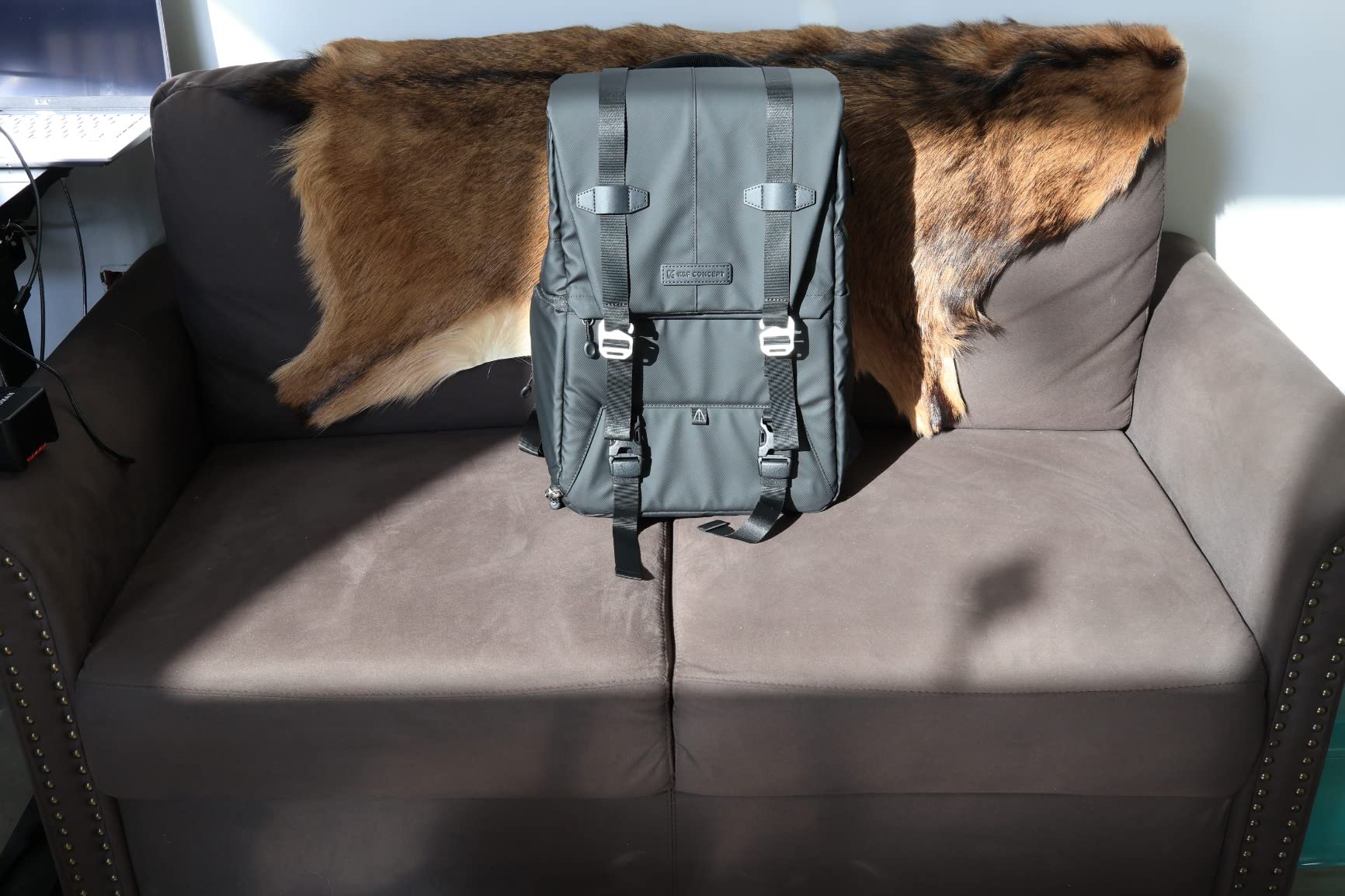 love everything about this bag. It’s a great size and has a lot of space and pockets. It doesn’t weigh a lot and has a place to put my tripod. I love the color of it as well. Im able to fit my camera (A7ii), my drone, flash, and my portable photo printer with no issues. 10/10