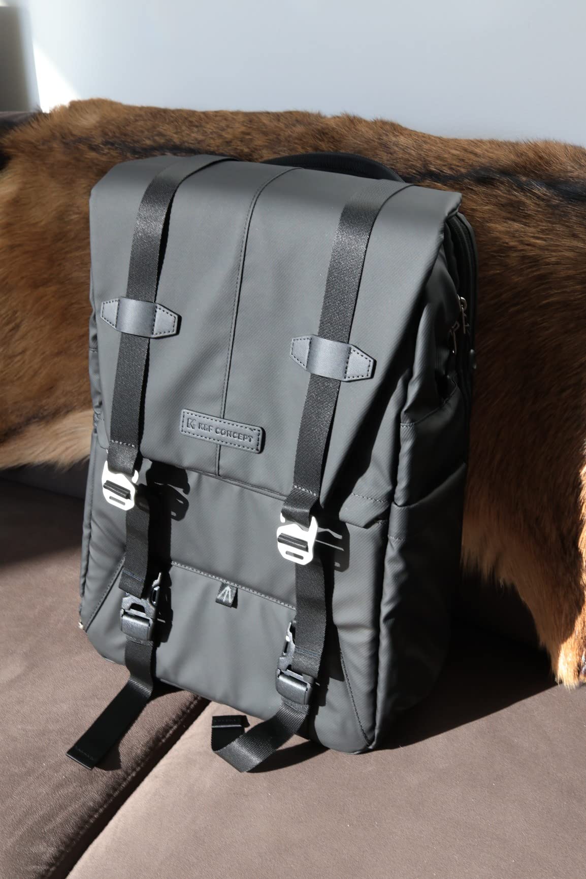 Dimensionally stable backpack bag, which is not only of good quality at first glance. This means that all seams are clean and neatly finished. The zippers are also neatly sewn in and can be opened and closed easily and without any problems. On the inside there are 2 large and 3 small dividers and a divider between the main and upper compartment, which - depending on your needs - can be placed in different positions with the help of Velcro. This allows you to perfectly adapt the inside of the backpack to your camera equipment. These dividers are well padded and provide sufficient protection. The backpack also has a separate, padded laptop compartment. This is also closed with a generous Velcro closure. Four smaller open inner compartments in the upper part, two small lockable compartments for e.g. SD cards in the main compartment, a "quick access" side pocket, two straps as a stop aid when fully unfolding, another front pocket with zipper and an open side pocket with elastic band , a removable key ring, a strap for attaching the suitcase and a rain cover complete the equipment. Overall, this backpack makes a very high-quality and stable impression. It has a large storage volume, but due to its slightly narrower shape it does not look bulky and is visually very attractive. The padded shoulder straps make it comfortable to wear. Of course, the application is not limited to transporting photographic equipment. It can also be used very well, for example as a school, university, laptop or travel backpack. By removing the inner room dividers, you get a large inner compartment and thanks to the water-repellent material, all items are well protected against moisture. This is also ensured by the internal overlaps under the zipper and the easy-to-close zippers, so that you can be sure that moisture stays out.