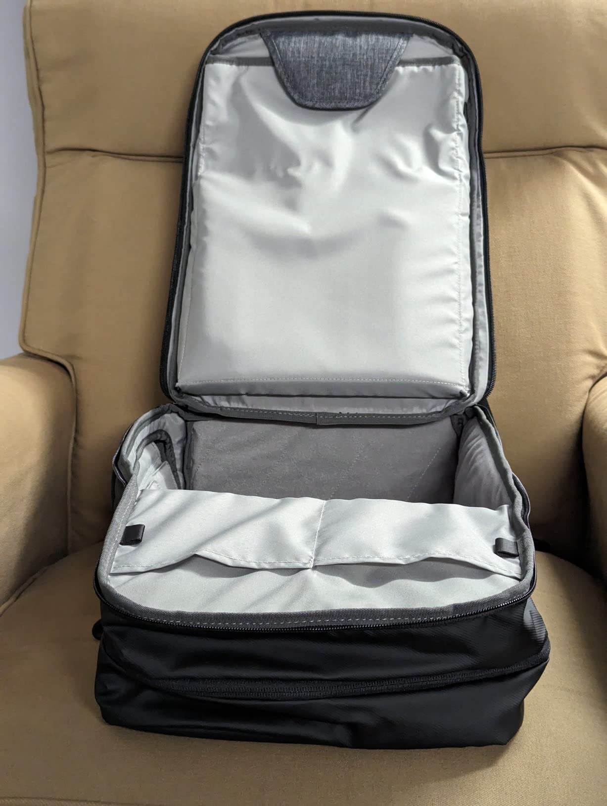 I bought this about a month ago (as of posting) and have been using it a great deal, both in collage commutes and standard travel. The design of the backpack is great, but there are some notable issues that I think would be helpful to consider.First, and most importantly, this backpack is not fully water proof. They do state this, but it's something that I'd like to go into with some more detail. I've used it four times in the rain. The first time I used it, it was lightly raining. I was out for maybe an hour and a half and nothing in the backpack was wet, though from the outside the backpack was soaked. The second time, it was raining moderately and I did notice some leakage, but none of my electronics were damaged. After that I started using the water cover and, although it's a hassle to take in and out, there were no " leak scares".As for the design, the internal compartment is fantastic. You can customize it in really any way you'd like, but it would have been beneficial to get maybe one or two more dividers. It also wouldn't have hurt to have the top pocket-area also functional with the dividers. You can still push the main divider (between the top and main compartments) to add more space to the main compartment, but this does very little to help with sectioning of the top area.Still I would give this backpack a 5/5 if it weren't for the straps. For short periods of time, the straps are comfortable. But as the day lingers on, even when there's little inside of the backpack, you can start to feel a little weighted and need to take a break (maybe 40 mins to an hour into wearing it). Also, the straps and back are not very breathable.I don't think a backpack exists which (to me) actually feels "breathable" but this one is on the lower side of the ranking. Your back and shoulders will get very hot wearing this, especially in the heat (of course), which isn't helped by the fatigue you get after prolonged travel. But if you can spend a few minutes to take it off and rest, this backpack will do just fine.I'd say, in terms of a tack/photography bag, this is a 5/5. The breathable issue won't be a problem since you'll be taking it on and off periodically as you take photos. But for a commuting or daily bag, its a 4/5. Great for carrying stuff (as any bag) but not for a long time.